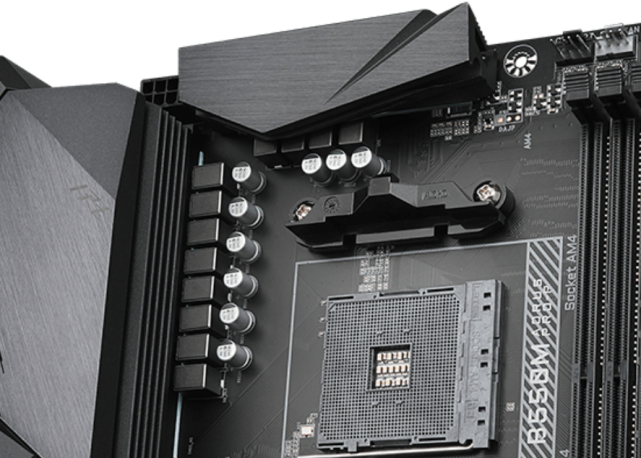 小雕B550M AORUS PRO-P采用了和小雕B550M AORUS PRO一致的外观设计,总体来看保持了雕族犀利而硬朗、锋芒毕露的一贯风格。它配备了10+2相数字供电,单相最高电流可达50A。特别值得一提的是,小雕B550M AORUS PRO-P的VRM散热片非常厚实,可以有效控制VRM部分的满载温度,而大家知道,市面上很多“丐版”B550主板VRM散热片极其单薄,当处理器超频满载的时候,VRM温度会非常高。从这一点来看,小雕B550M AORUS PRO-P的超频能力和超频稳定性表现也会非常出色(接下来我们也会进行详细的超频体验)。其他用料与设计方面,小雕B550M AORUS PRO-P与小雕B550M AORUS PRO也基本一致,例如显卡插槽配备合金装甲、第一条M.2插槽配备散热装甲、I/O面板采用一体化设计、2倍铜4层PCB等等都是标准配置,在用料方面也达到了雕族的豪华标准,品质值得信赖。不过,在网络部分,小雕B550M AORUS PRO-P进行了升级,将小雕B550M AORUS PRO的千兆网卡升级为了2.5G网卡,数据带宽提升150%,更加适合追求极致网络传输速度的发烧级用户和专业用户。