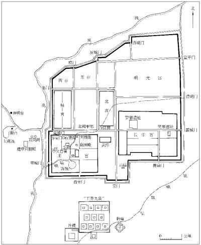 在中国古代都城发展史上,“择中建宫”是继“择中建都”发展起来的。夏代晚期的偃师二里头都邑遗址位于“天地之中”的“大嵩山”地区,可谓“择中建都”,而二里头都邑之中心区又是其“宫城”地区,这应该是“择中建宫”的佐证。早期偃师商城的宫城在都城南部东西居中位置。洹北商城的宫城、战国时代的魏国都城安邑城之宫城等基本都在其都城中央,郑韩故城西城的宫城位于西城的东西居中。东汉洛阳城、魏晋与北朝洛阳城与唐长安城之宫城一般均在都城北部东西居中之地。北宋东京城的宫城则居外郭城的中央。金中都、元大都、明清北京城的宫城一般在都城东西居中位置。宫城作为国家政治中枢,居于坐北朝南的都城东西居中位置,无疑是突出宫城的“中”之核心政治地位。这是宫城作为国家政治中枢的核心地位之体现。