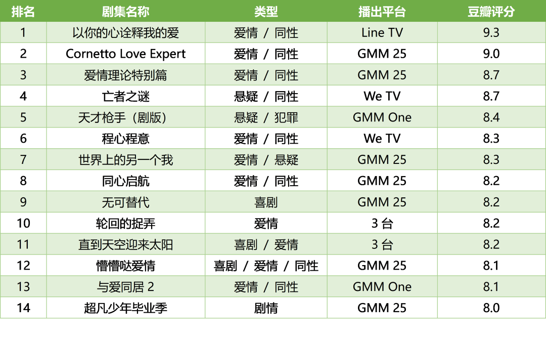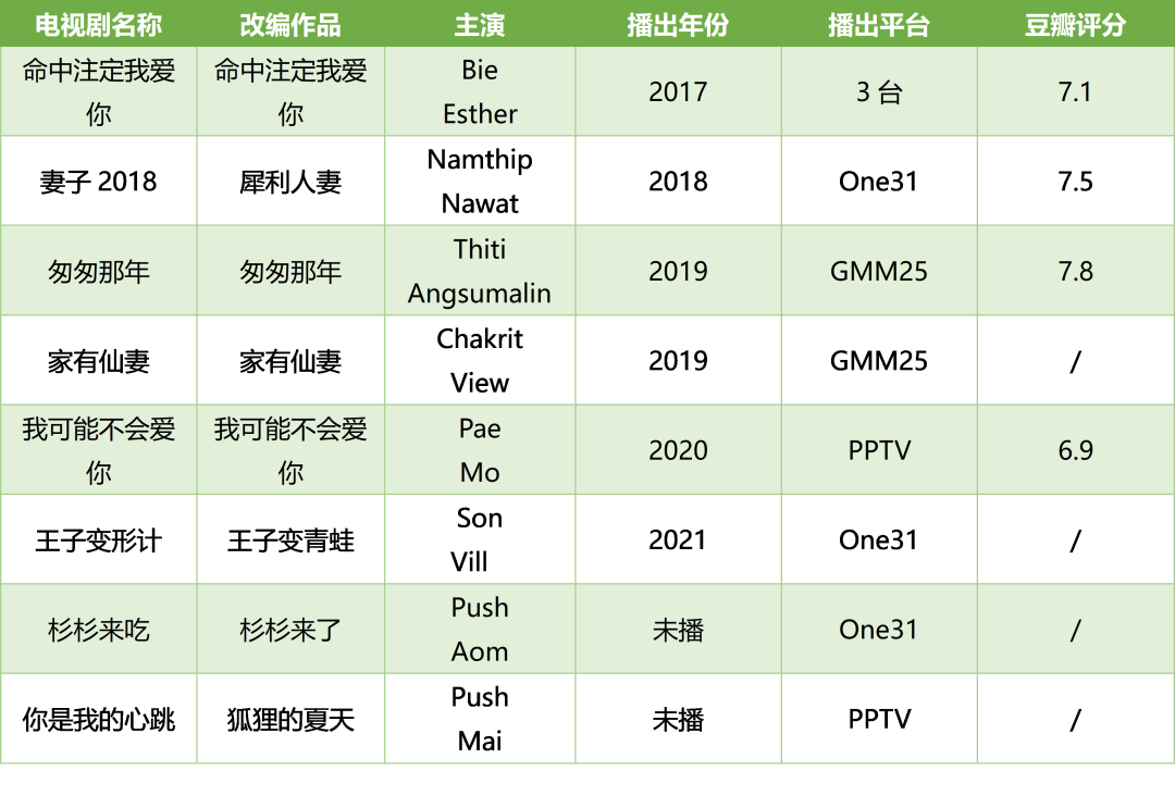 除了艺鼎传媒外,经笔者观察,还有一些国内的影视公司正在推动中国IP的泰剧改编,比如芒果娱乐的《杉杉来吃》、洞察娱乐的《你是我的心跳》等。