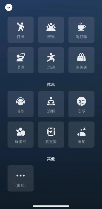 我的菜单中新增了状态按钮,内置了各种官方预设的状态标签,也可以选择其他中的未知状态,选好后可以编辑一段心情文字,配上图片,视频,甚至是位置。