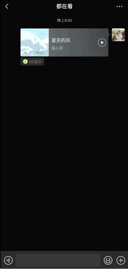 当朋友分享给你一首 QQ 音乐时,会看到专属的音乐卡片样式。此时点进去,会显示目前和你一起听歌的人数。点击左上角的歌曲名称,就可以将该首歌曲一键设置为我的状态;