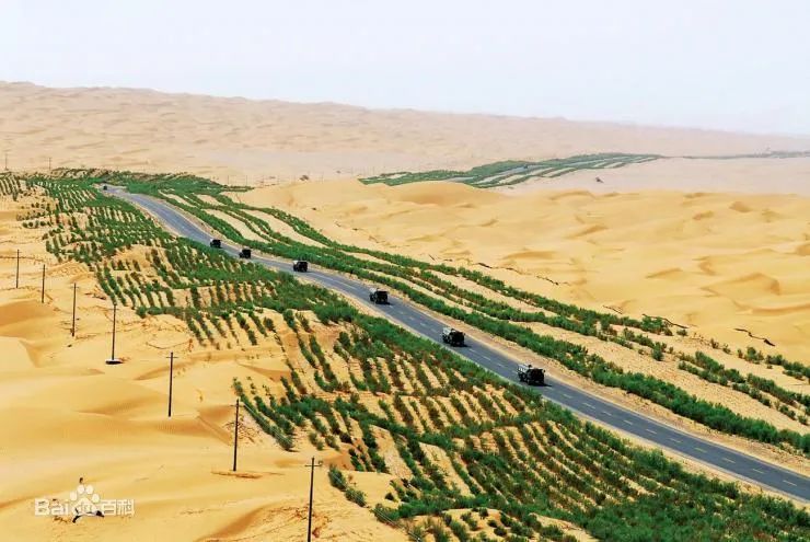第一条穿越塔克拉玛干沙漠的公路是轮台——民丰沙漠公路,于1995年贯通,这条公路是世界最长的贯穿流动沙漠的等级公路。其修建的一个目的是塔里木油田的开发服务。