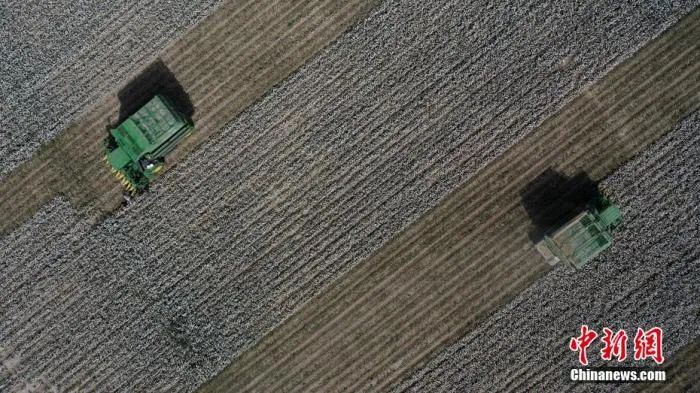 新疆另一大出口创汇产品就是棉花,新疆这片土地特别适合种植喜温、喜光和对水分敏感的棉花,新疆棉花产量占到全国的近90%,而且主要为高端的优质长绒棉。与内地一家一户守着几亩植棉花地不同。新疆由于地广人稀,很适合大农场方式种植,很早就开始了机械化采摘。