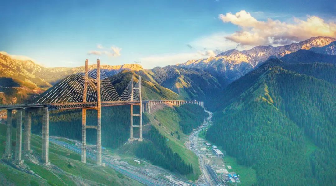除了铁路建设,新疆的公路建设也取得巨大成就。独库公路北起克拉玛依市独山子区,南至阿克苏地区库车市,公路全长561公里,一半以上路段在翻越天上山脉的崇山峻岭、深水峡谷里,路况险峻,景色壮观,被誉为“中国最美公路之一”,更是中国公路建设史上的一座丰碑。独库公路往南对接是通往阿拉尔、和田的公路,这是中国第二条穿越塔克拉玛干沙漠的公路。