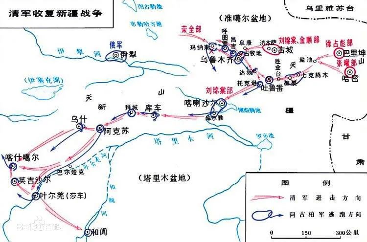 清朝前期,经康熙、雍正、乾隆三朝的努力,平定了准噶尔汗国,新疆再次重回中国版图。乾隆皇帝设立伊犁将军,管理新疆。