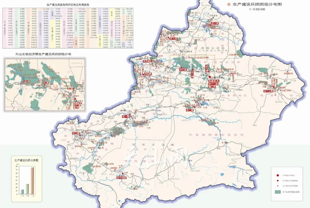 70年的建设,离不开一支重要的力量——新疆生产建设兵团,他们一边戍边一边生产,开垦土地,兴修水利,将戈壁变良田,建起一座座新城镇,如石河子市、阿拉尔市、五家渠市、双河市、昆玉市、新星市等兵团城市。