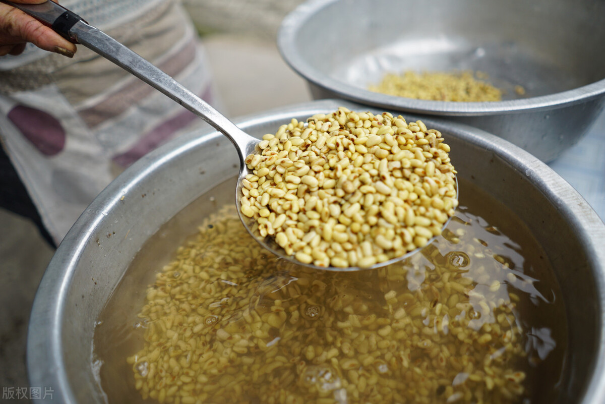 制作方法:1.将黄豆、黑豆、青豆、豌豆用水浸泡6~8小时,洗净;把花生仁洗净。