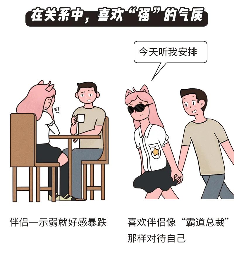 所以,一个具有强势气质的伴侣,对这两种人来说是有很大吸引力的。