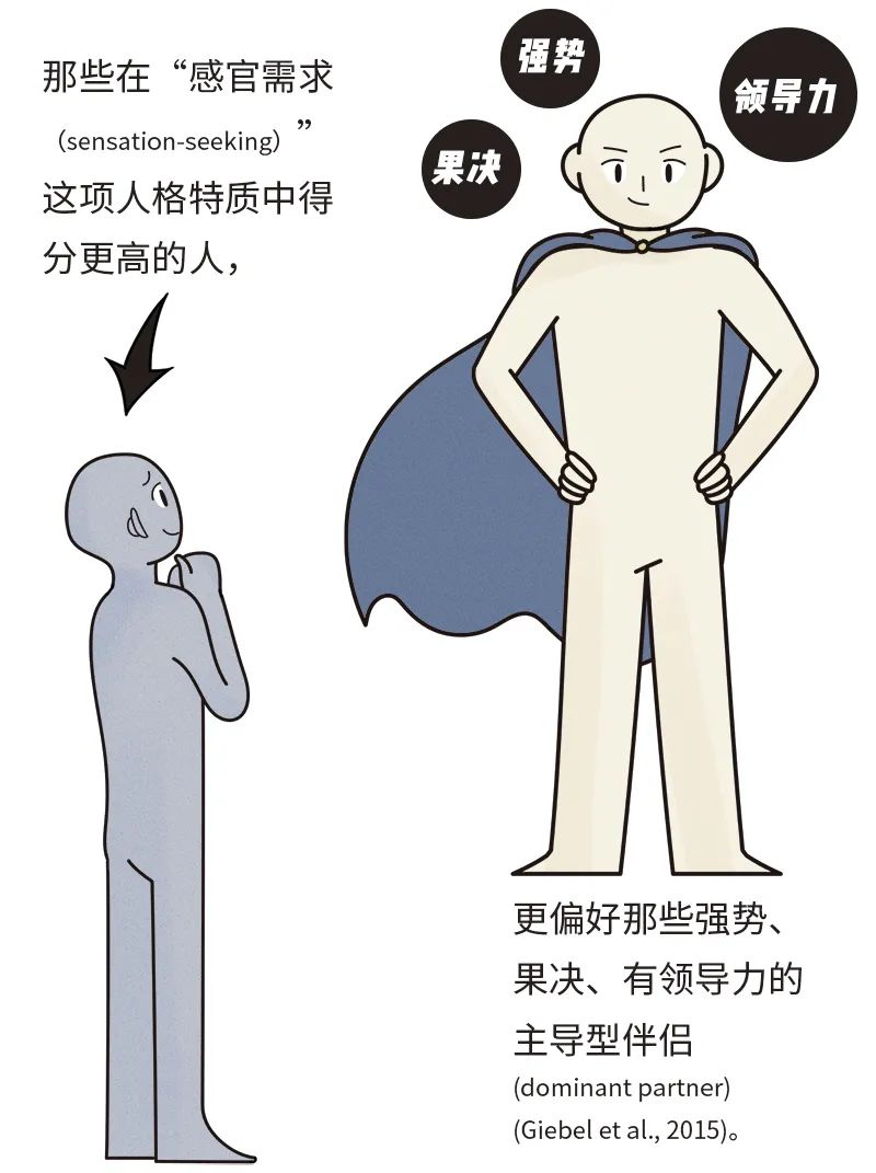 因为“感官需求者” 特别讨厌无聊、重复、单调的人和事物,在ta们看来,一个被动、温和、友好(nice)的伴侣是很无聊的,而一个主导型伴侣可以激发ta们的兴奋感,满足ta们对新鲜、刺激、禁忌的渴望。