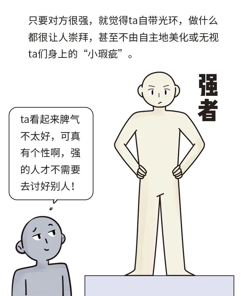 正如开头提到的,大多数人慕强,可能会戴上一层“强人滤镜”: