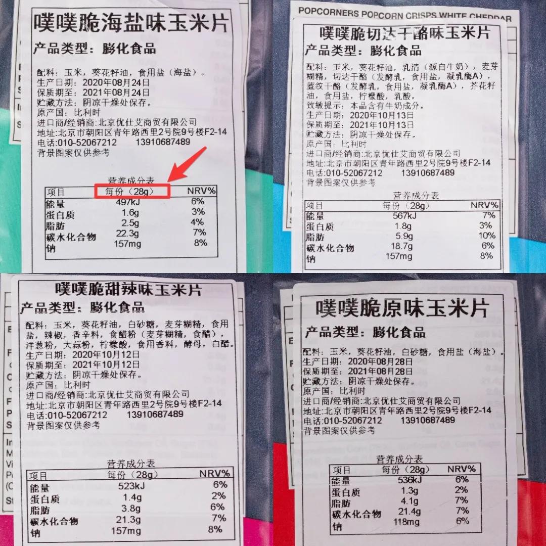 从配料表来看,海盐和原味的成分更纯粹点,只有玉米+葵花籽油+食用盐(+白砂糖)感觉吃的也更放心!虽说是低卡零食,但同样 100g,比普通乐事原味的热量只少了 50 多卡。