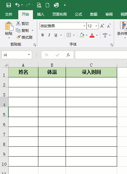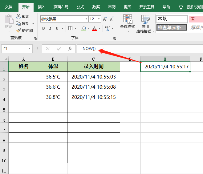 这样当输入体温后,会自动记录数据录入的日期和时间,省去我们敲键盘了。