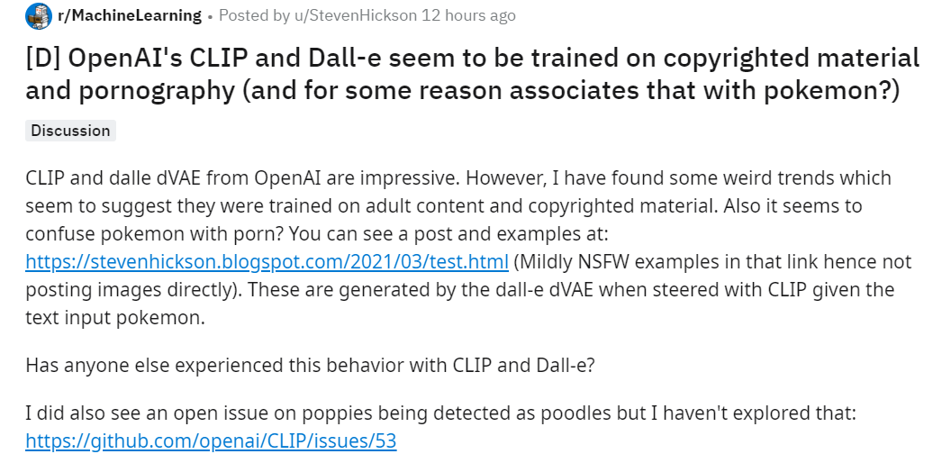 [2]https://www.reddit.com/r/MachineLearning/comments/m0ll9w/d_openais_clip_and_dalle_seem_to_be_trained_on/