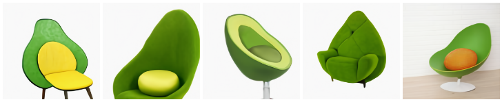 Steves的第一个实验和OpenAI在博客文章中用完整的DALL·E 所做的 “鳄梨形状的扶手椅” 实验是一样的,尽管这个方法不如完整的DALL·E方法好,但仍然很酷!