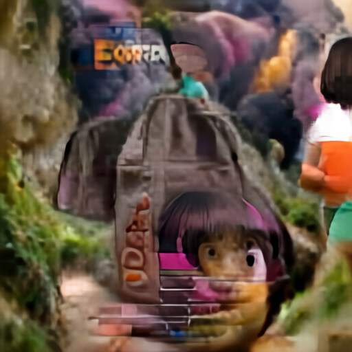 AI生成的 “爱探险的朵拉”,好吓人,把头都生成到背包上面去了。