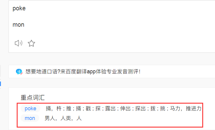 当把pokemon(双向字母组合)拆开来成poke mon看,如下所示,AI可能会自己产生动名词短语联想?