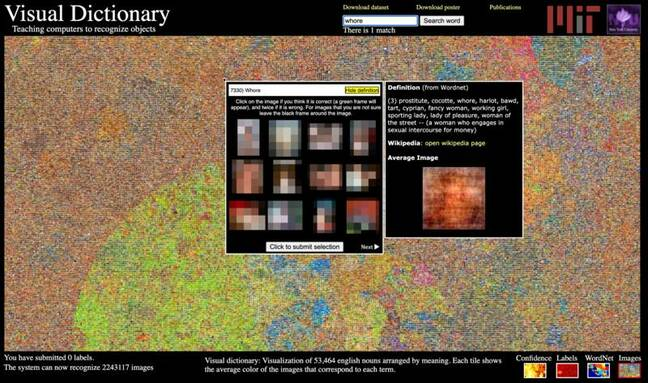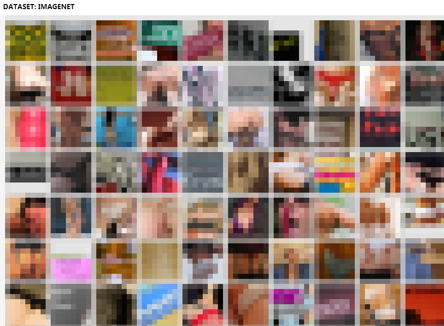 这是依赖WordNet名词来确定可能的类别而没有检查图像标签带来的结果。他们还确定ImageNet中也有类似的问题,包括非自愿的色情材料等。