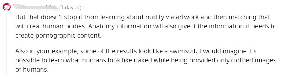 然而一位网友表示,可是这并不能阻止AI通过艺术品来学习luo体,然后将其与真实的人体相匹配。另外解剖学信息还将为其提供创建色情内容所需的信息。