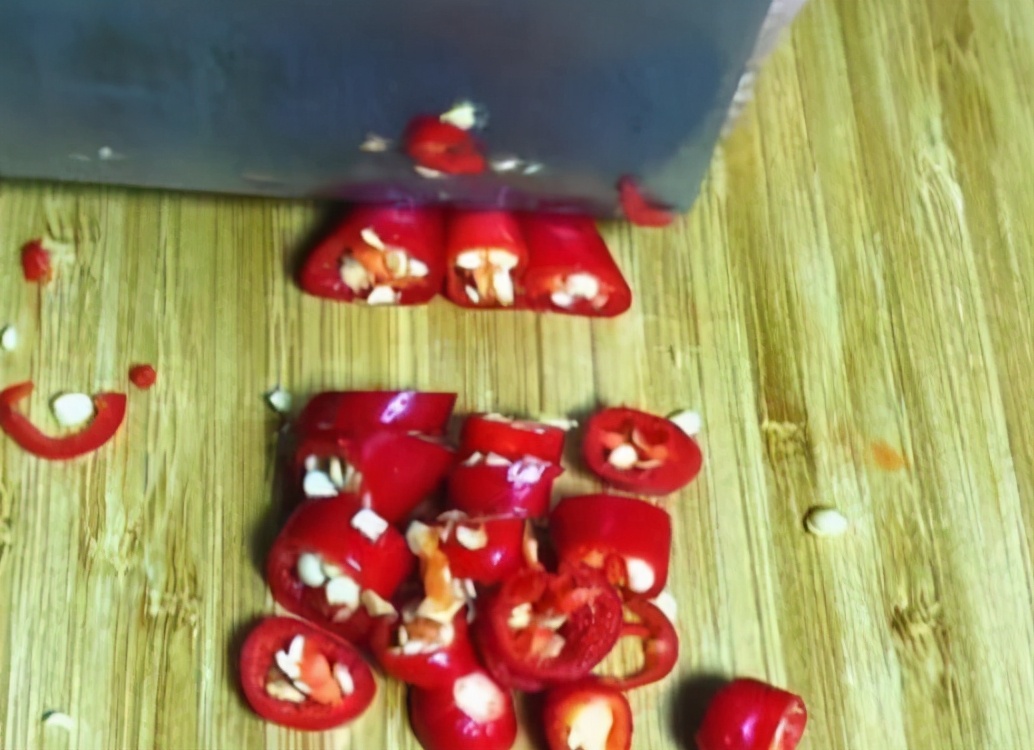第三步:热锅烧油,油热后下入料头(大蒜,小米椒)炒出香味,炒香后下入豆腐