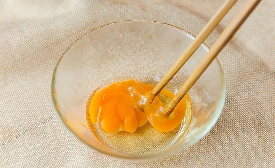 碗中打入一个漂亮的公鸡蛋,用筷子搅散