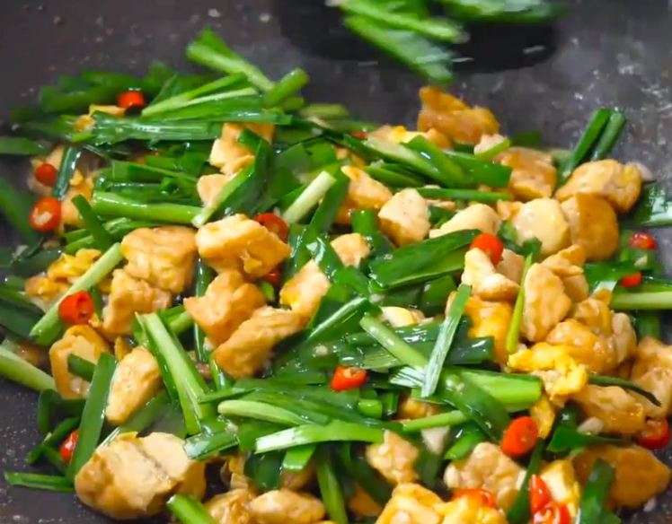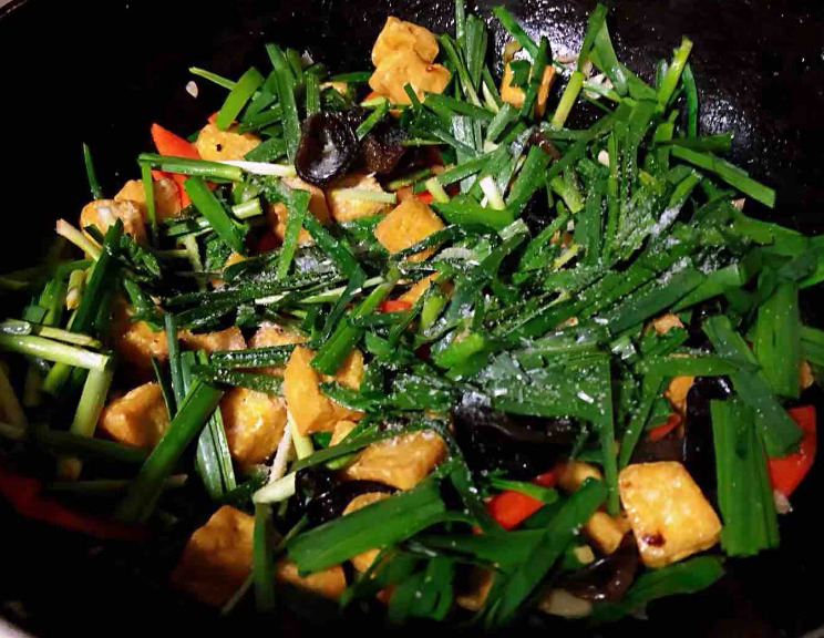 美味的豆腐韭菜就做好了,香味十足,营养丰富,非常适合孕妇,做法简单快捷,喜欢你也可以试试。