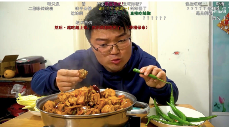 吃播弱化了私人空间与公共空间的界限,即麦克卢汉所说的电子媒介时代的“内爆现象”。徐大SAO将个人生活放送到公共空间,让受众在深深卷入和无限贴近中完成了对小镇青年的细致窥视。前期看到的是家庭和睦的理想投射,后期则是人性鄙俗的自我审视。