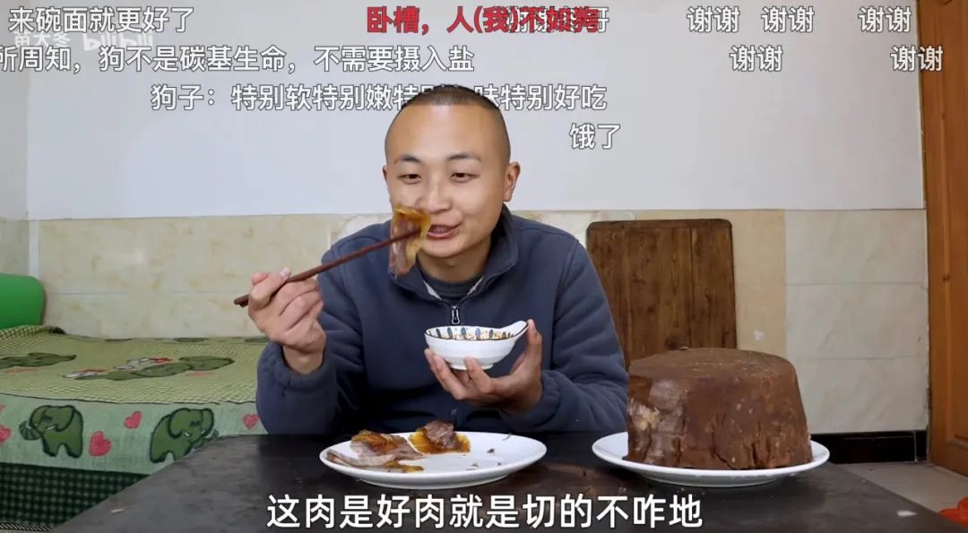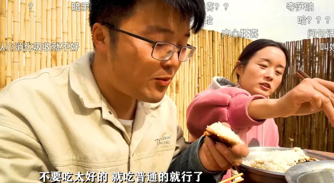 媳妇在旁边一起吃,他边吃边咕哝:“人家都说脾胃不好,吃好的都是浪费吸收不了。不要吃太好的,就吃普通的行了。”评论全都是质疑:“人言否?”这当然不是人说的话,这可是阜阳第一善人徐大SAO的金句。