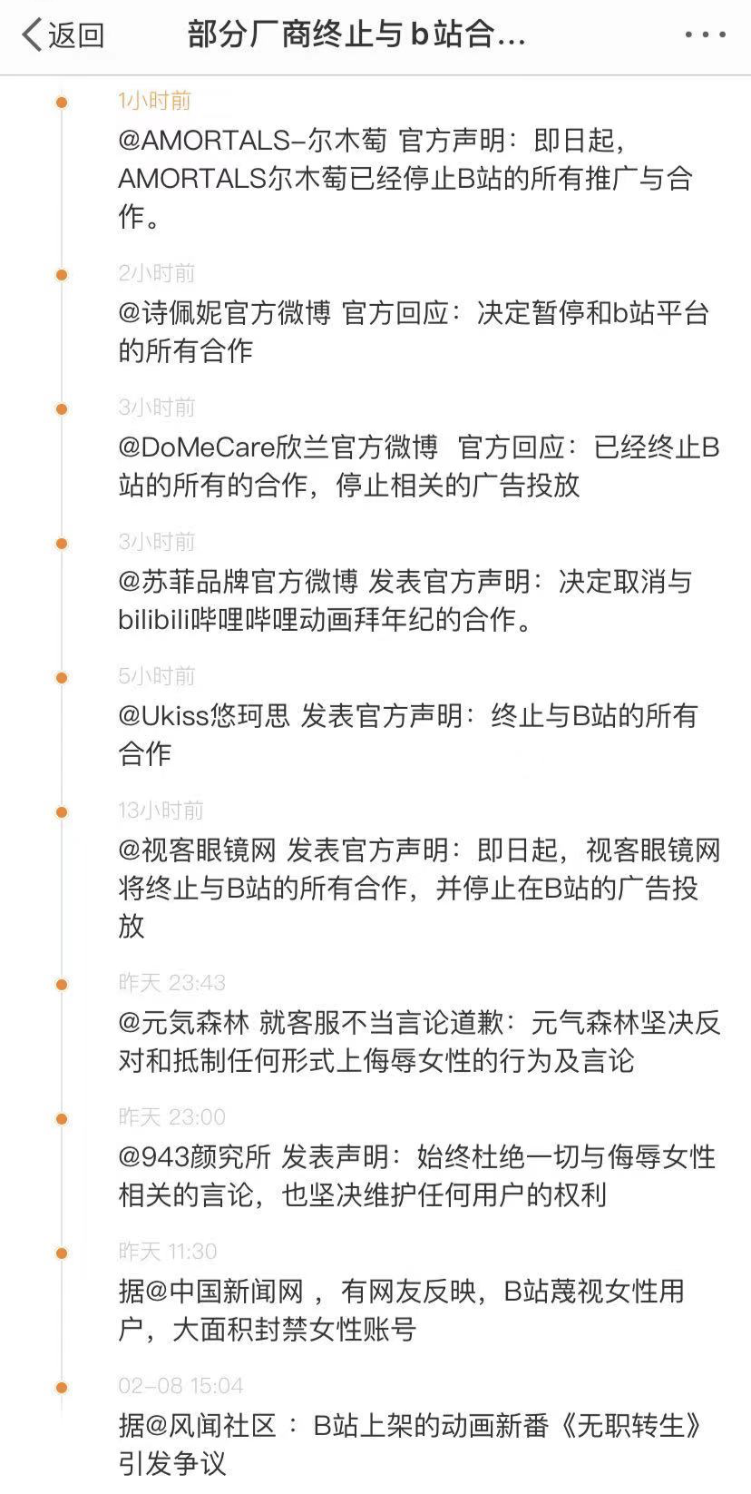 此外,多家厂商也已发布官方声明,表示暂停与B站的所有合作