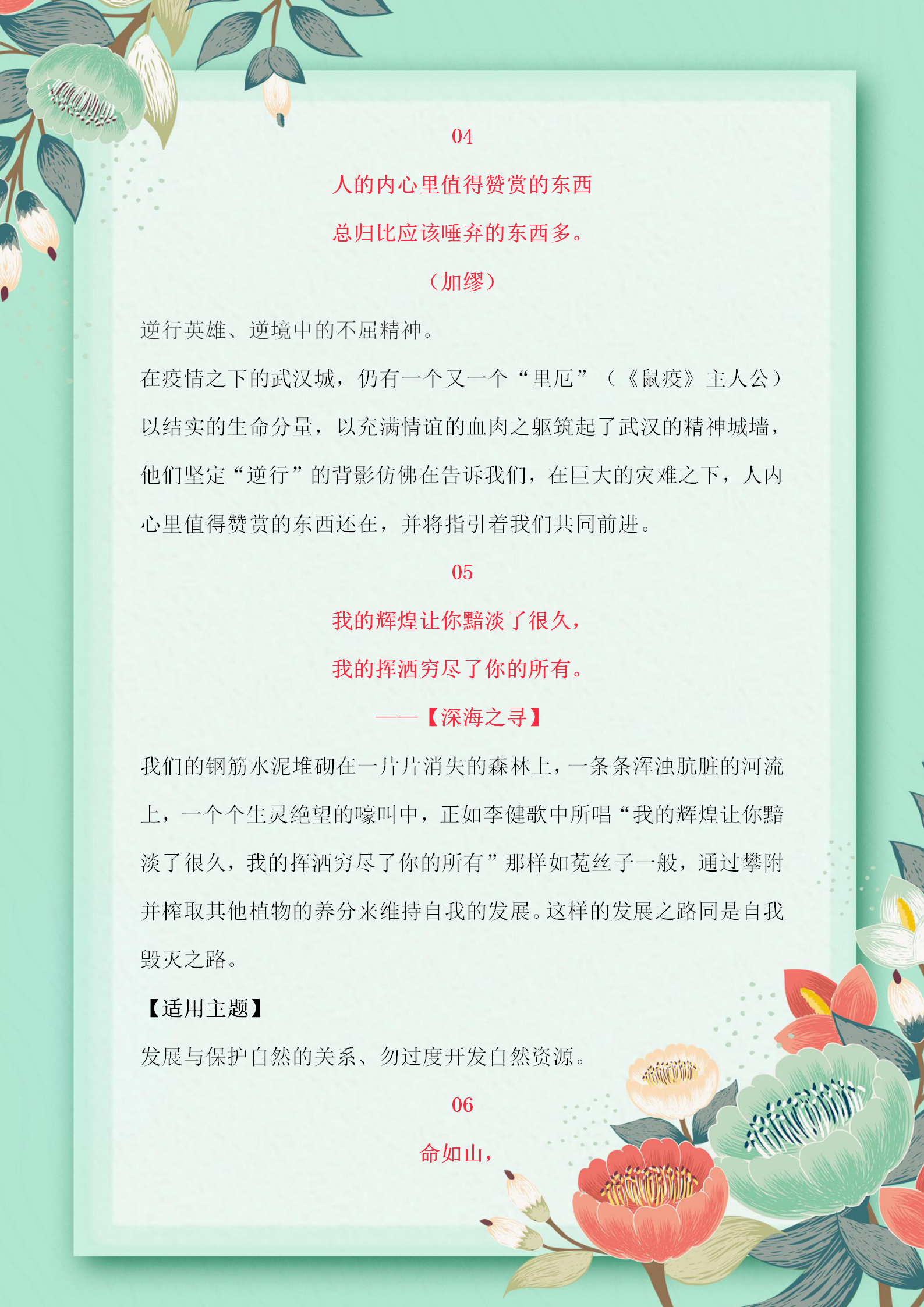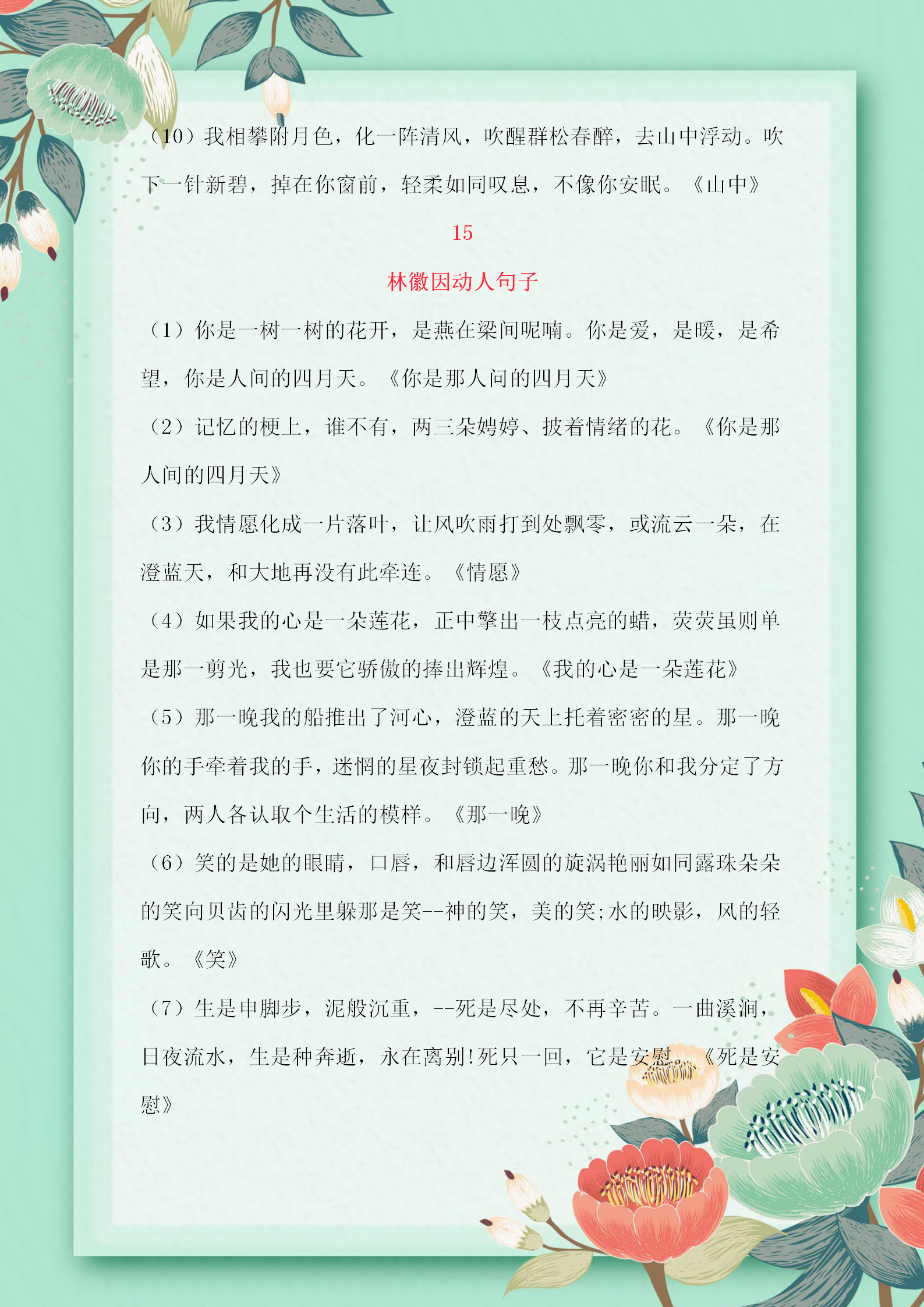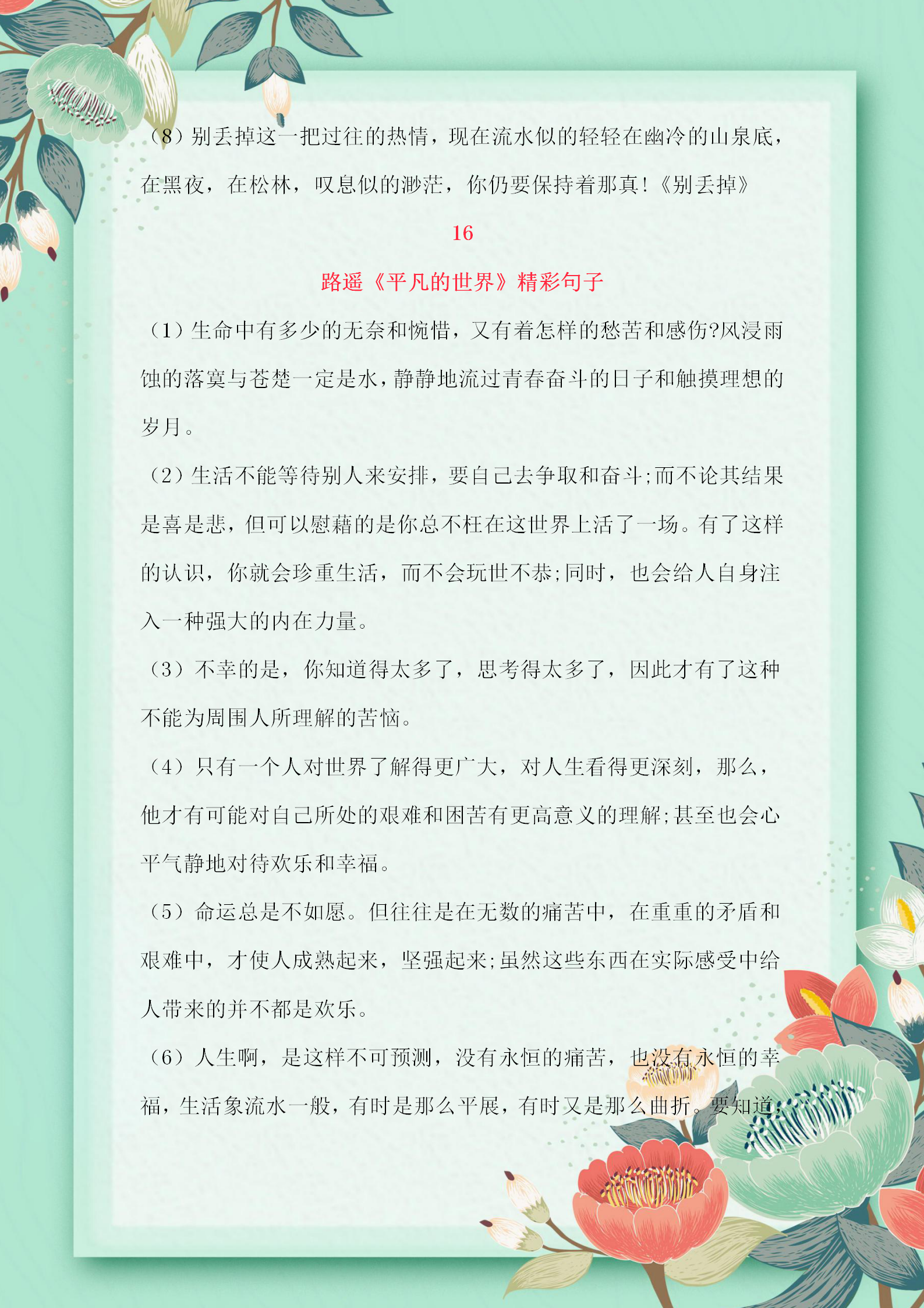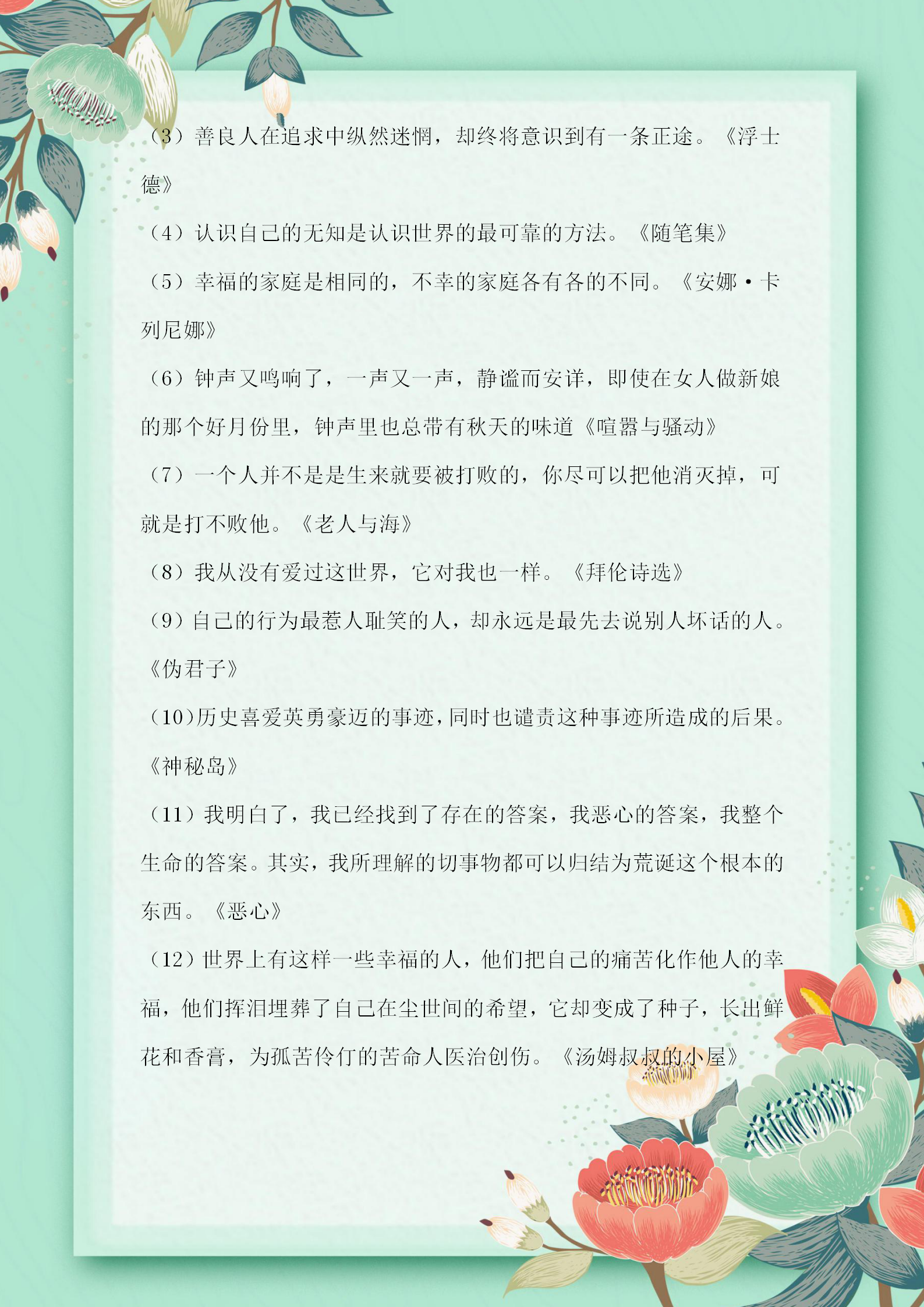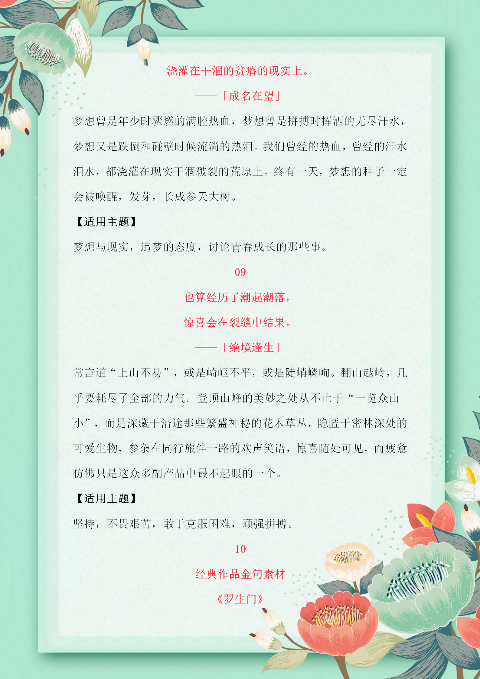 所以,同学们平时有时间就多做积累,今天呢,为了方便同学们积累作文素材,我们为大家分享以下这份100个金句积累作文素材大全,同学们可以收藏打印出来,把这些句子积累起来用在语文作文中,画龙点睛!