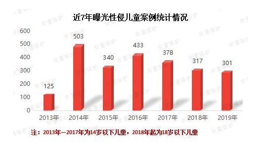 据《女童保护2019年性侵儿童案件统计及儿童防性侵教育调查报告》显示,2019年全年媒体公开报道的性侵儿童(18岁以下)案例301起,受害人数807人,年龄最小的仅为4岁。