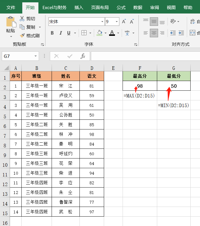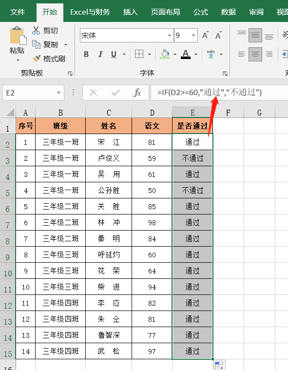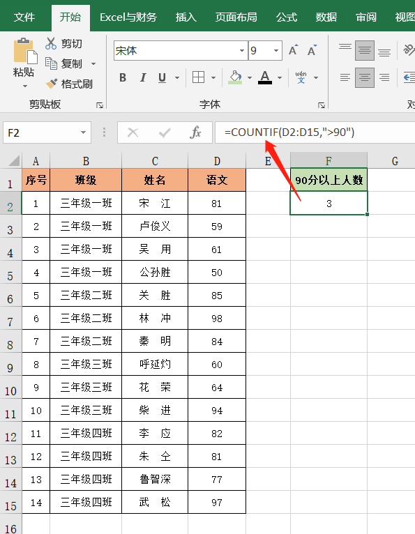 问题:统计成绩表中不及格的人数。不及格也就是低于60分。