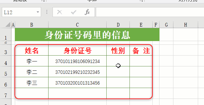 公式:=IF(MOD(MID(C4,17,1),2)=0,"女","男")