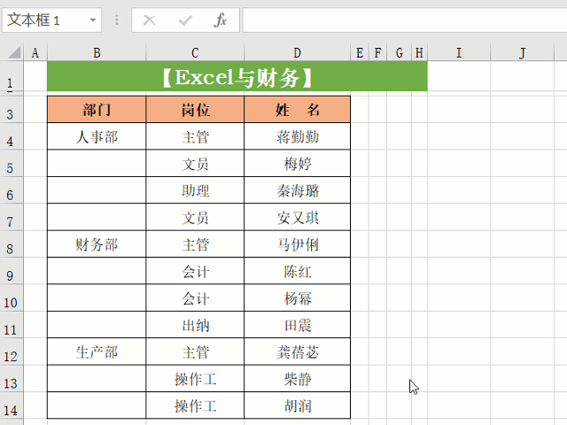 选中空白单元格列,按Ctrl+G键,依次点击【定位条件】-【空值】-【确定】,然后在编辑栏中输入:=B4,按Ctrl+回车键即可