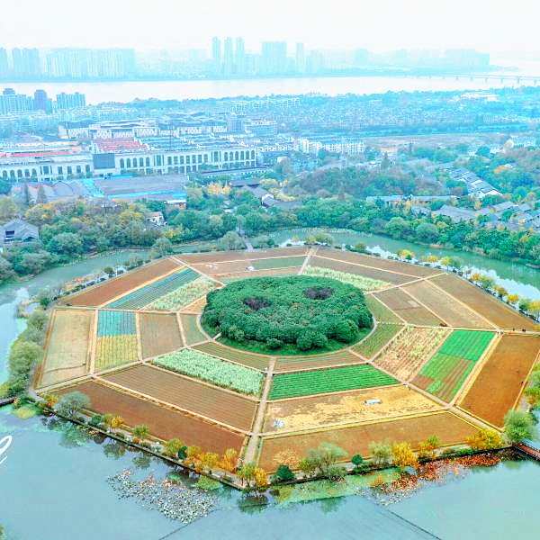 2、八卦田遗址公园,杭州市上城区虎玉路41号。之所以叫八卦田是因为从上空俯瞰就像是一个八卦图一样,中心是森林小公园,四边是田地,种植各种蔬菜水果等农作物,非常适合亲子游。这是玉皇山下一个闹中取静的公园,无需门票,八卦田曾经是南宋皇家的籍田,籍田是中国农耕文明的一个缩影。这块八卦田就是在宋高宗时期,高宗赵构在首都南郊即八卦田遗址公园开辟籍田,每年春耕前皇帝率领文武百官行籍礼以祭先农,中国冠名“皇家花园”的景点有很多,但是冠名“皇家菜园”的景点,估计独此一份,别无分店。