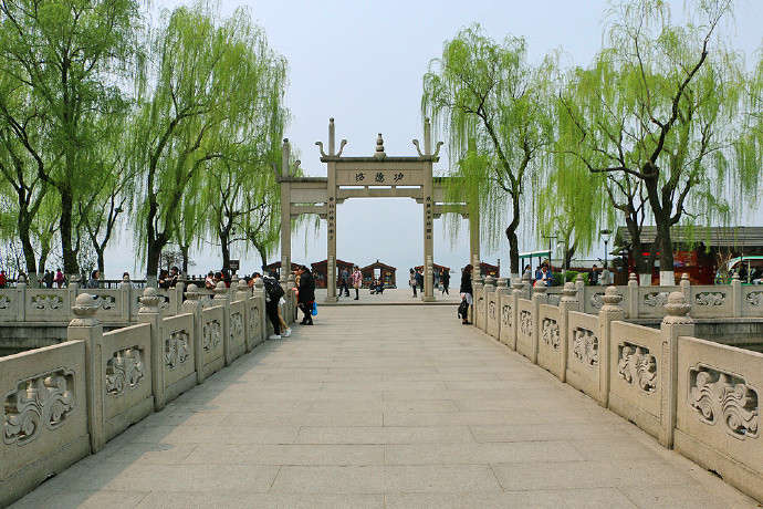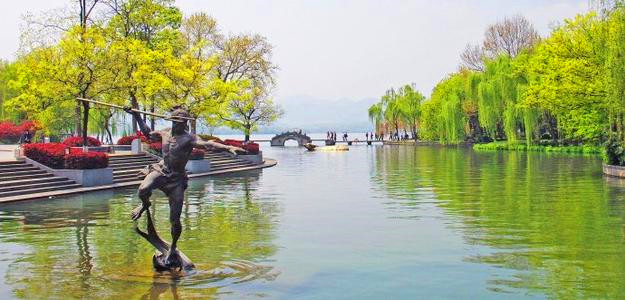 11、涌金公园,杭州市上城区龙井路1号,西湖东侧,涌金桥东侧,在公园内向东可以看到涌金桥卧于西湖之上,向西可以看到古涌金门,向北西湖波光粼粼,堤柳成荫,一副如诗如画的江南景象。《水浒传》第一百十四回“涌金门张顺归神”,指的就是现在的涌金广场水岸,此处可以看到张顺飞叉的雕像,生动传神。