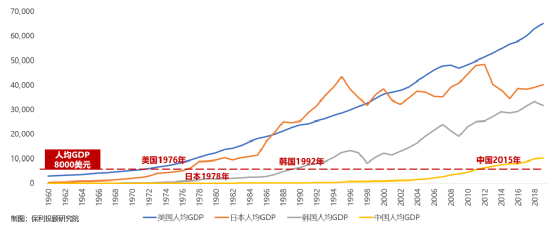 根据世界银行标准,人均GDP&8000美元,经济动能切换、居民消费进入全面跃升阶段,会开启服务经济时代。房地产行业逐渐地从以住宅为主的开发,转向了多个子市场百花齐放的局面。2012年我国服务业的比重超过工业,2015年人均GDP达到8000美元(美国1976年、日本1978年、韩国1992年),中国也步入了服务经济时代,不动产服务领域正在积蓄发展势能。