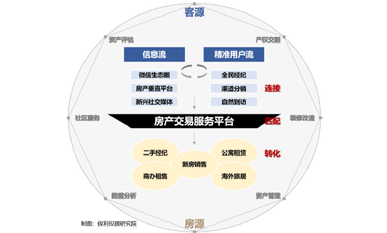 房产交易具有决策环节复杂、交易参与方众多、信息专业性强三大特征。房产交易的服务提供趋向全覆盖、专业化,未来交易服务平台链接多方资源,将逐步发展成为数据、交易、金融等一系列综合服务供应商,同时基于交易服务入口,还具备切入泛居住消费市场的想象空间。