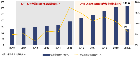 管理规模加速扩张:2020年,行业管理面积达到330亿㎡;年复合增长率超过11%。预计到2025年,行业管理规模将达到430亿㎡。