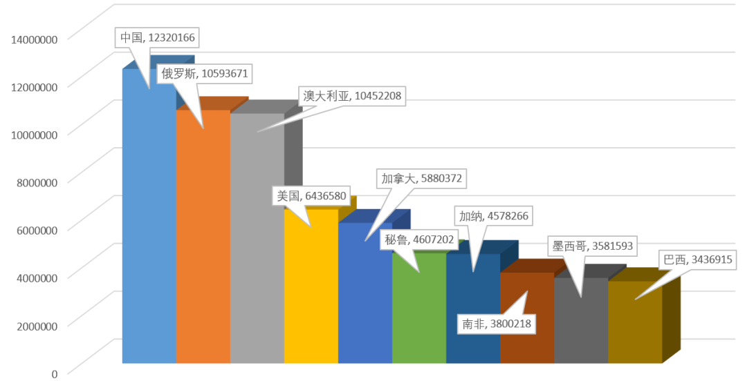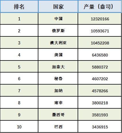 两张图看十大黄金生产国黄金产量: