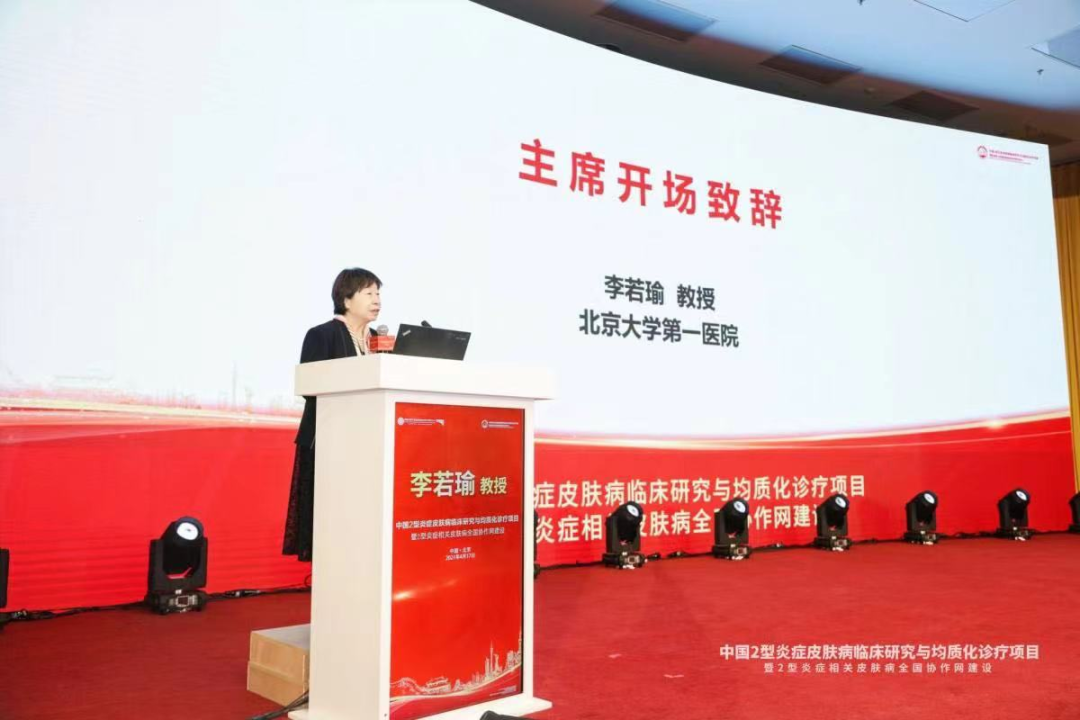 图:国家皮肤与免疫疾病临床医学研究中心主任李若瑜教授致开场辞