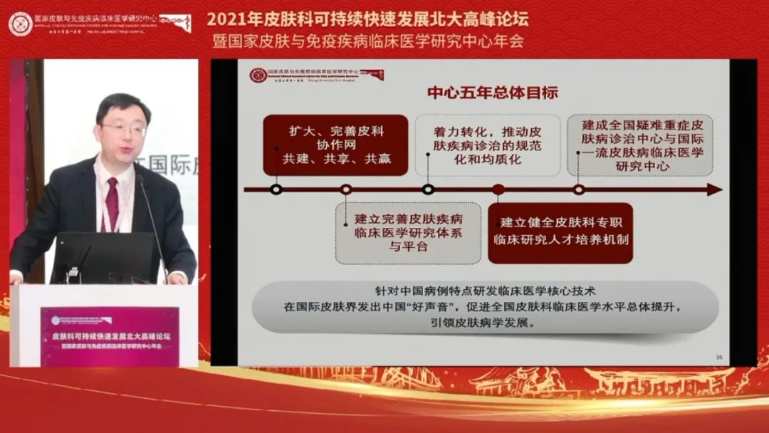 图:李航教授介绍国家皮肤与免疫疾病临床医学研究中心未来五年总体目标