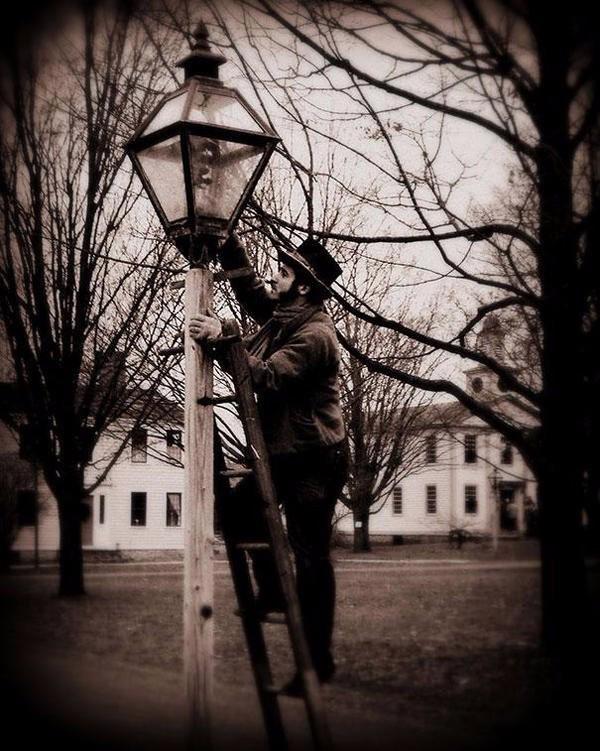 19世纪,路灯加油工,当时还是烧油,现在已经都替换成了电灯。