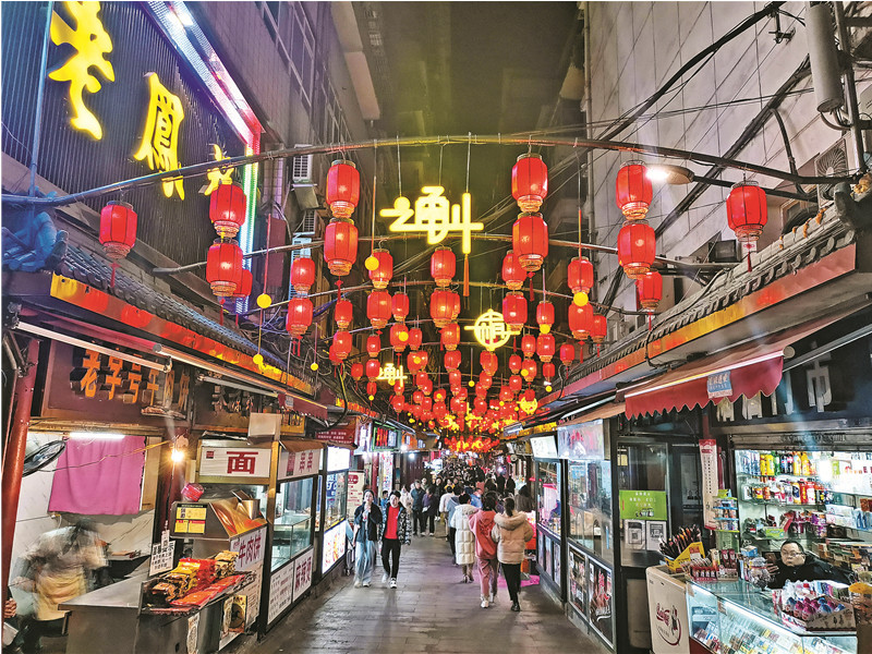 莲花湖湿地公园平时就备受市民喜爱,春节假期更是热闹非凡。被市民朋友们形象地称为“转转楼”的观鸟塔,是小伙伴们必定“打卡”的景点之一。逛完“转转楼”,走走玻璃吊桥,还可以顺便再欣赏一下美轮美奂的莲湖夜景。此外,塔沱、大寨子、梨树坪等公园也吸引了不少游客前往拍照留念。