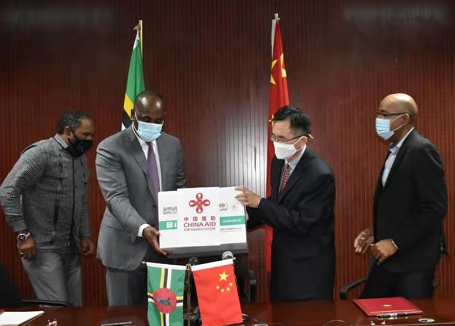 中国援助疫苗抵达多米尼克 多名政要交接仪式现场接种