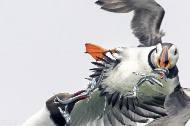 惊慌的鱼从水面跃出,瞬间成为了海鹦鹉美味的午餐。看着这样的捕食画面,是不是很下饭呢?