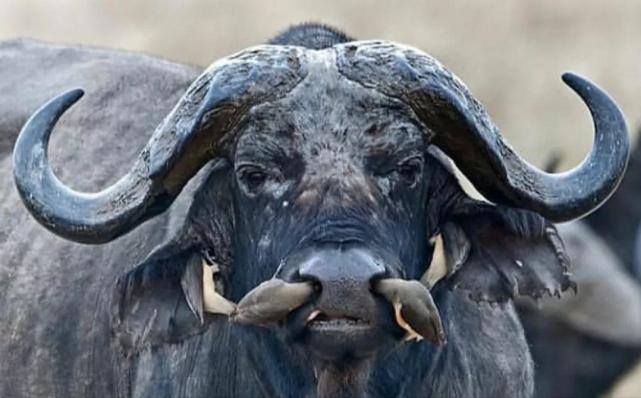 看牛鼻孔中的两个小鸟,和牛形成了很好的共生关系,看这牛的眼神,似乎感觉牛有灵性一般,你觉得呢?