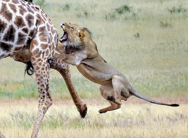 如图是在捕食长颈鹿的狮子,如果只是一个狮子,这只长颈鹿还有生还的可能,如果是一个家族的狮子,那这长颈鹿就只能靠下辈子翻盘了。
