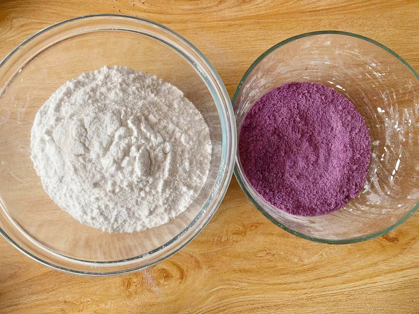 5、继续将紫色桂花部分过一遍筛,就得到了两盆细腻的米粉。