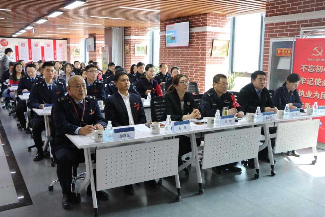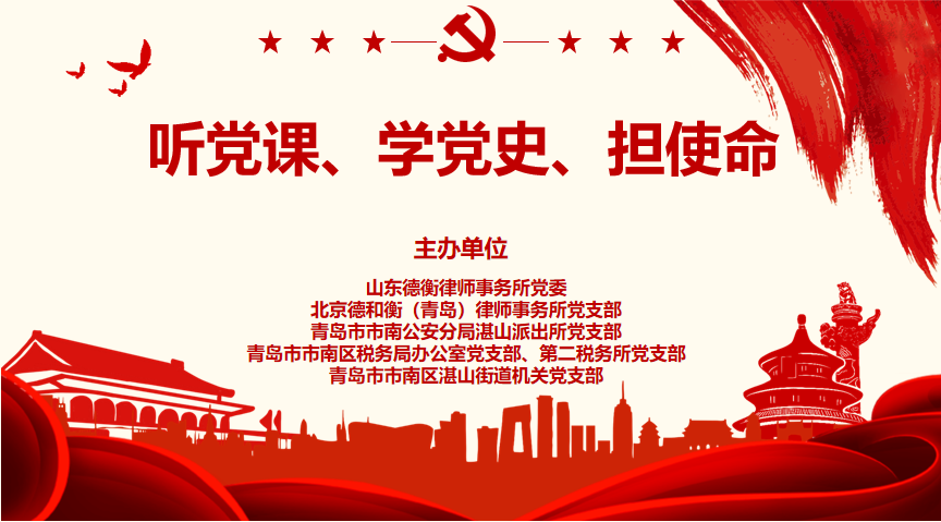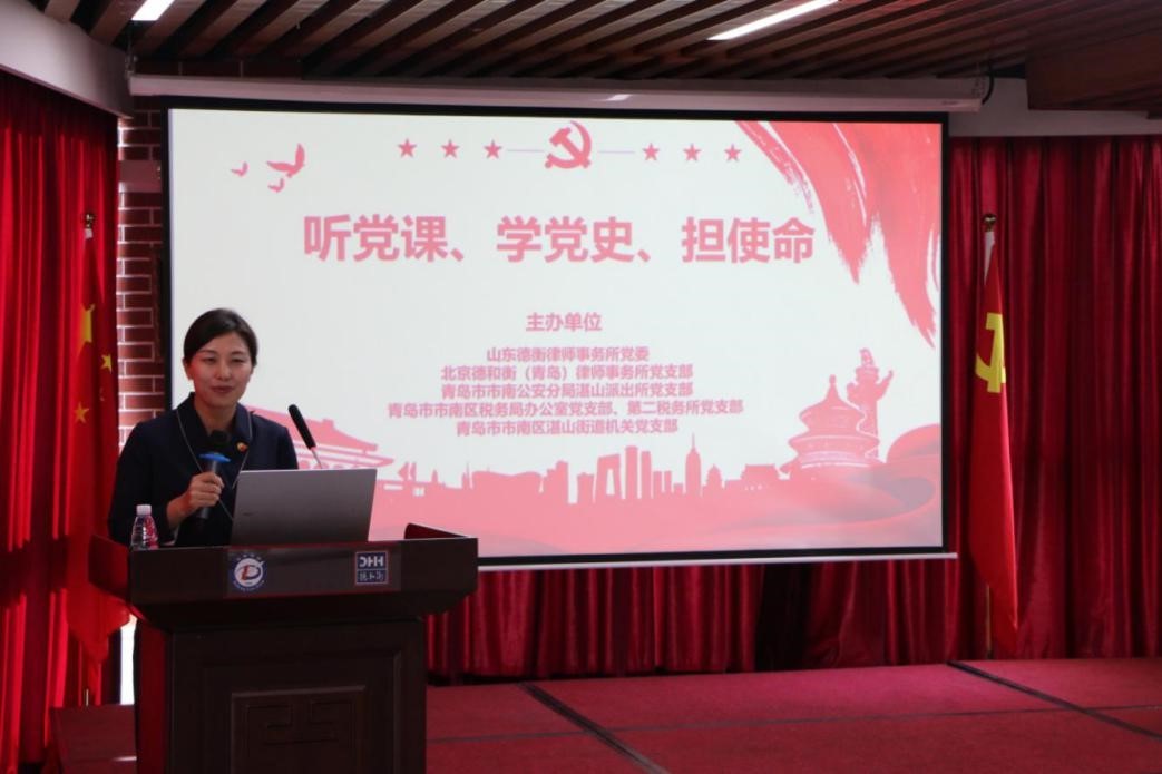 青岛报道3月13日电:3月12日下午,为了深入学习贯彻《中共中央关于在全党开展党史学习教育的通知》文件精神,山东德衡律师事务所党委、北京德和衡(青岛)律师事务所党支部联合支部共建单位青岛市市南公安分局湛山派出所党支部,青岛市市南区税务局办公室党支部、第二税务所党支部,湛山街道机关党支部在德衡律师集团青岛办公室党建与文化交流中心共同举办“听党课、学党史”活动,邀请青岛市革命烈士纪念馆巾帼宣讲团及德衡所党委委员李修超分别以《共产党员的画像》《红军长征》为题进行授课。来自各单位的百余名党员现场参加了党课学习。为了扩大党史学习教育范围,本次活动还通过小鹅通开辟线上学习平台,为在外出差、坐班人员提供了同步学习机会。