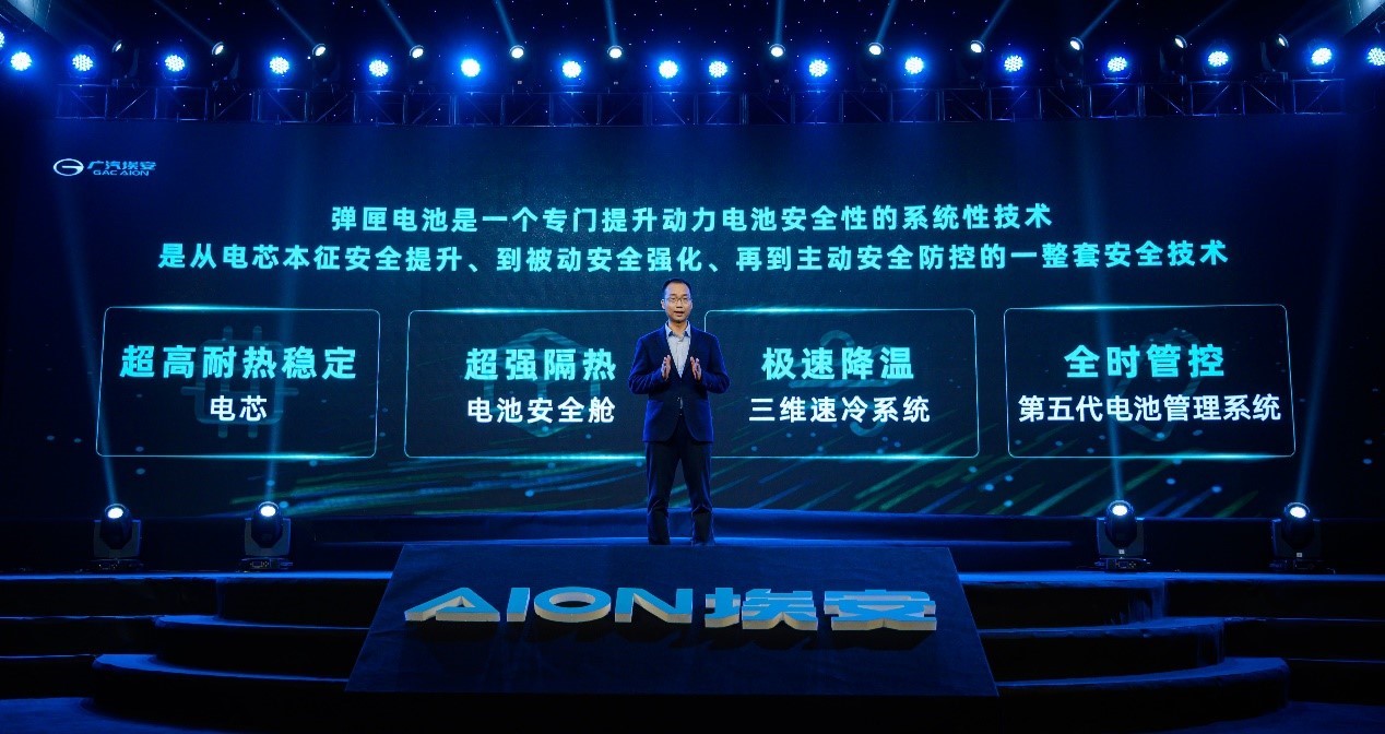 广汽埃安弹匣电池系统安全技术,是一个基于电芯本征安全提升、整包被动安全强化及软件主动防控的系统级电池安全技术。该技术实现了三元锂电池整包针刺不起火的重大安全突破,为行业提升动力电池安全性能探索出了一条行之有效的技术路径,或重新定义了三元锂电池的安全标准,对全球新能源汽车产业的发展具有重要的意义。